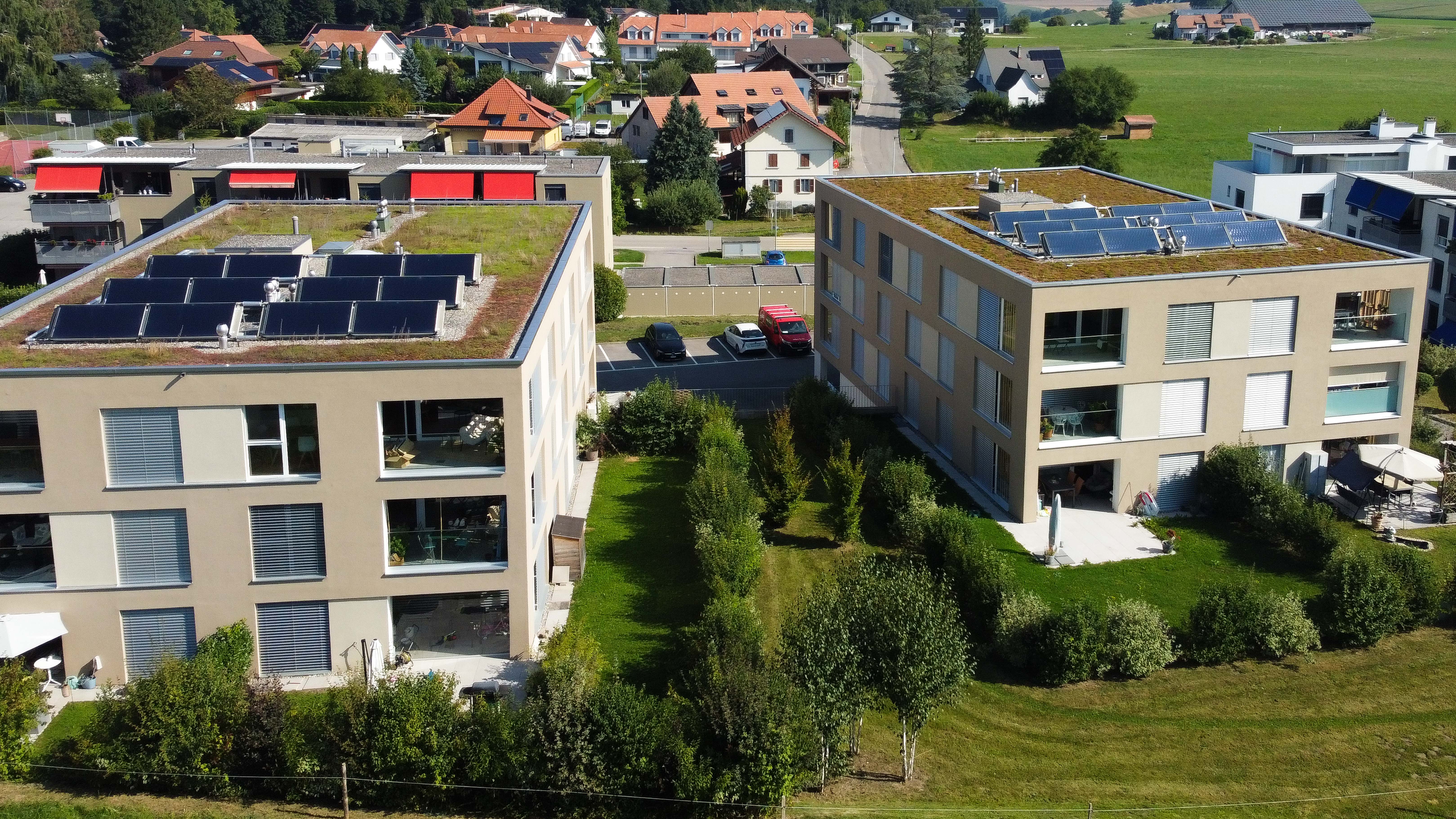 Composé de deux immeubles à l’architecture contemporaine et soignée, le projet réunit 24 appartements en PPE du 2.5 au 4.5 pièces. Chaque logement se distingue par des espaces lumineux, de larges loggias et des finitions de qualité, pensés pour un confort durable. Chauffage au sol, panneaux solaires, triple vitrage et toitures végétalisées garantissent une efficacité énergétique optimale.